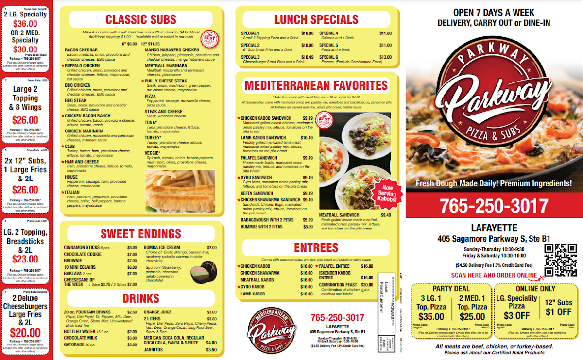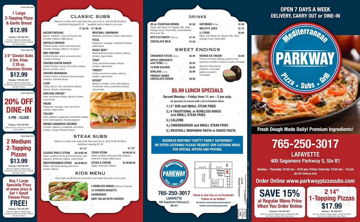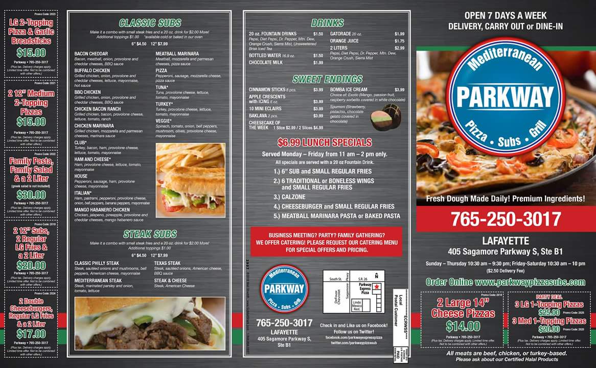 If you're in the mood for a satisfying meal that hits the spot, look no further than the Parkway Pizza & Subs Menu. Located in Lafayette, IN, this local favorite offers a delicious variety of pizzas, subs, and sides that are perfect for any craving. Whether you're digging into a classic pizza with all your favorite toppings or enjoying a hearty sub filled with fresh ingredients, there's something here for everyone. And don’t forget about the sides - from crispy fries to mouthwatering wings, each dish complements the main course perfectly. The best part? The menu is designed to make sure you always leave feeling full and satisfied, no matter what you're in the mood for.